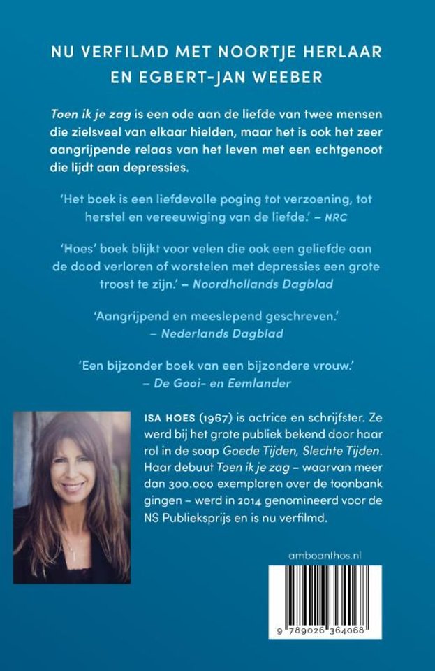 Isa Hoes (1967) is actrice en scenariste. In 2013 brak ze door als schrijfster met het boek 'Toen ik je zag', over haar leven met acteur Antonie Kamerling, die in 2010 overleed. Van dit boek zijn inmiddels ruim 300.000 exemplaren verkocht. Ook Gedichten die vrouwen aan het huilen maken, de bloemlezing die Hoes in 2015 publiceerde, werd een bestseller.