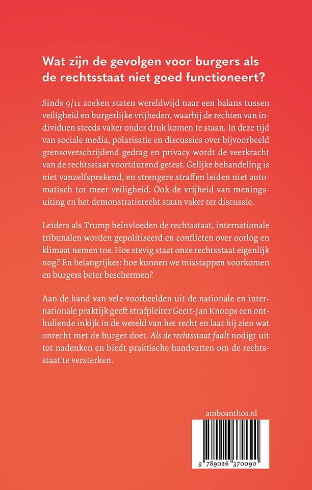 In Als de rechtsstaat faalt gaat de bekende strafpleiter Geert-Jan Knoops, aan de hand van vele voorbeelden uit zijn nationale en internationale rechtspraktijk, in op deze vragen.