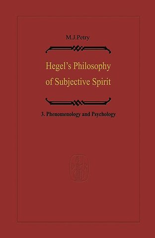 (Volume Three).- B. The Phenomenology of Spirit. Consciousness § 413.- a. Consciousness as such § 418.- ?) Sensuous consciousness § 418.- ?) Perception § 420.- 1) Observation.- 2) Connection.- 3) Demonstration.- ?) Understanding § 422.- b. Self-consciousness § 424.- ?) Desire §426.- 1) Drive.- 2) Activity.- 3) Satisfaction § 428.- ?) Recognitive self-consciousness § 430.- 1) Struggle §431.- 2) Mastery and Servitude § 433.- 3) Community of need § 434.- ?) Universal self-consciousness § 436.- c. Reason § 438.- C. Psychology. Spirit § 440.- a. Theoretical spirit (Intelligence) § 445.- ?) Intuition § 446.- 1) Feeling §446.- 2) Attention § 448.- 3) Intuition proper § 449.- ?) Presentation § 451.- 1) Recollection § 452.- i) Image.- ii) The unconsciously preserved image § 453.- iii) Recollection proper § 454.- 2) Imagination § 455.- i) Reproductive.- ii) Associative § 456.- iii) Phantasy § 457.- (1) Symbolic.- (2) The sign § 458.- (3) Language § 459.- 3) Memory § 461.- i) Verbal.- ii) Reproductive § 462.- iii) Mechanical § 463.- ?) Thought § 465.- 1) Understanding § 467.- 2) Judgement.- 3) Formal reason.- b. Practical spirit § 469.- ?) Practical feeling § 471.- 1) Subjective § 472.- 2) Intuitive.- 3) Thought.- ?) Impulses and wilfulness § 473.- 1) Passion § 474.- 2) Interest § 475.- 3) Wilfulness § 477.- ?) Happiness § 479.- c. Free spirit § 481.- The Phenomenology of Spirit (Summer Term, 1825).- B. Consciousness § 329.- a. Consciousness as such.- 1) Sensuous consciousness § 335.- 2) Perceptive consciousness § 337.- 3) Understanding § 340.- b. Self-consciousness § 344.- 1) Immediate self-consciousness § 348.- i) Drive.- ii) Desire.- iii) Satisfaction § 350.- 2) The relatedness of one self-consciousness to another § 352.- i) Struggle § 353.- ii) Mastery and Servitude § 356.- iii) Communal provision.- 3) Universal self-consciousness § 358.- c. Reason § 360.- 1) Certainty § 361.- 2) Substantial truth § 362.- 3) Knowing and spirit.- Notes.- Index to the Text.- Index to the Notes.