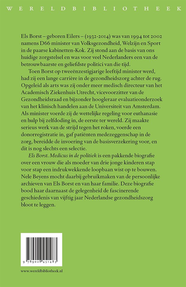 Nele Beyens schreef een pakkende biografie, waarbij ze ook gebruik mocht maken van de persoonlijke archieven van Els Borst en haar familie. Els Borst. Een medicus in de politiek biedt daarnaast een fascinerende blik op ruim zestig jaar geschiedenis van de Nederlandse zorgsector