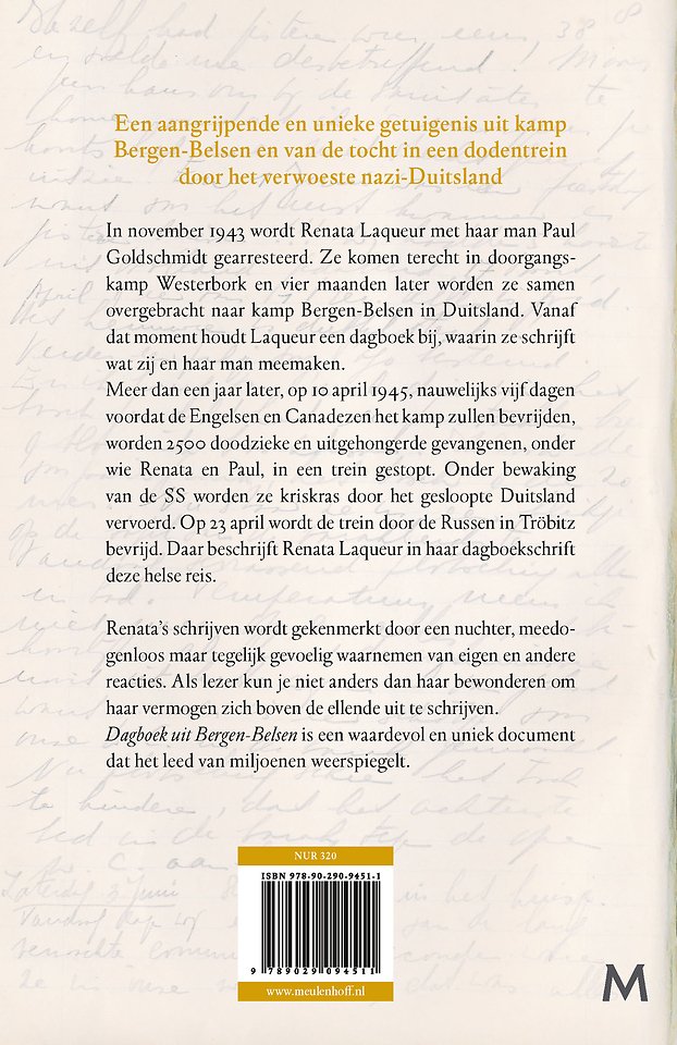 In november 1943 wordt Renata Laqueur, dochter van een Pruisische hoogleraar en van Joodse afkomst, met haar man Paul Goldschmidt gearresteerd. Ze komt terecht in doorgangskamp Westerbork en vier maanden later worden ze samen overgebracht naar kamp Bergen-Belsen in Duitsland. Laqueur maakte altijd al aantekeningen wanneer ze op reis was. En hoe cru ook, zij ziet haar gedwongen vertrek naar Bergen-Belsen op dat moment als een soort reis. Vanaf het moment van haar aankomst in het kamp, schrijft ze op wat zij en haar man meemaken. Het is voor haar een manier om de verschrikkingen van het kampleven te doorstaan. Dat houdt ze vol tot december 1944, wanneer ze er te zwak voor wordt.