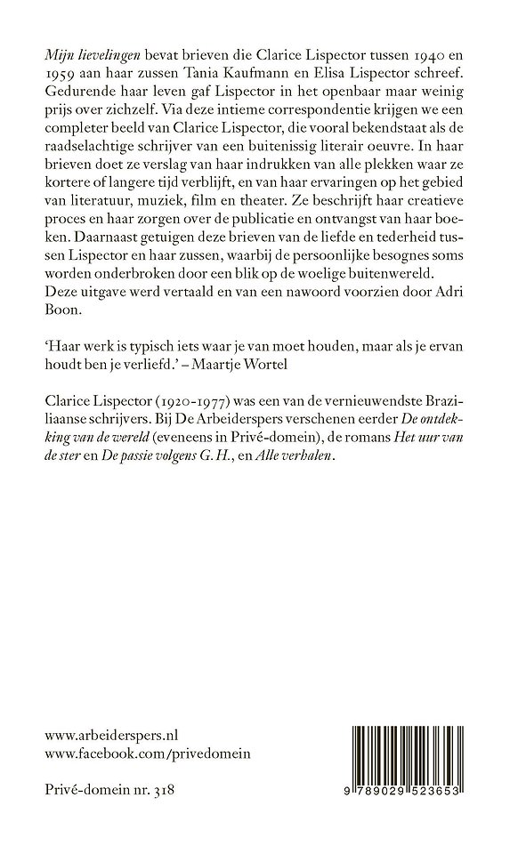 Mijn lievelingen bevat brieven die Clarice Lispector tussen 1940 en 1957 aan haar zussen Tania Kaufmann en Elisa Lispector schreef. Ze doet verslag van haar indrukken van de meer dan dertig steden waar ze verblijft, en van haar ervaringen op het gebied van literatuur, muziek, film en theater. Ze beschrijft haar creatieve proces en haar zorgen over de publicatie en ontvangst van haar boeken. Daarnaast getuigen deze brieven van de liefde en tederheid tussen haar en haar zussen, waarbij de privébesognes soms worden onderbroken door belangrijke historische gebeurtenissen. De brieven laten minder bekende kanten van Lispectors persoonlijkheid zien en vormen zo een interessante aanvulling op haar literaire werk.