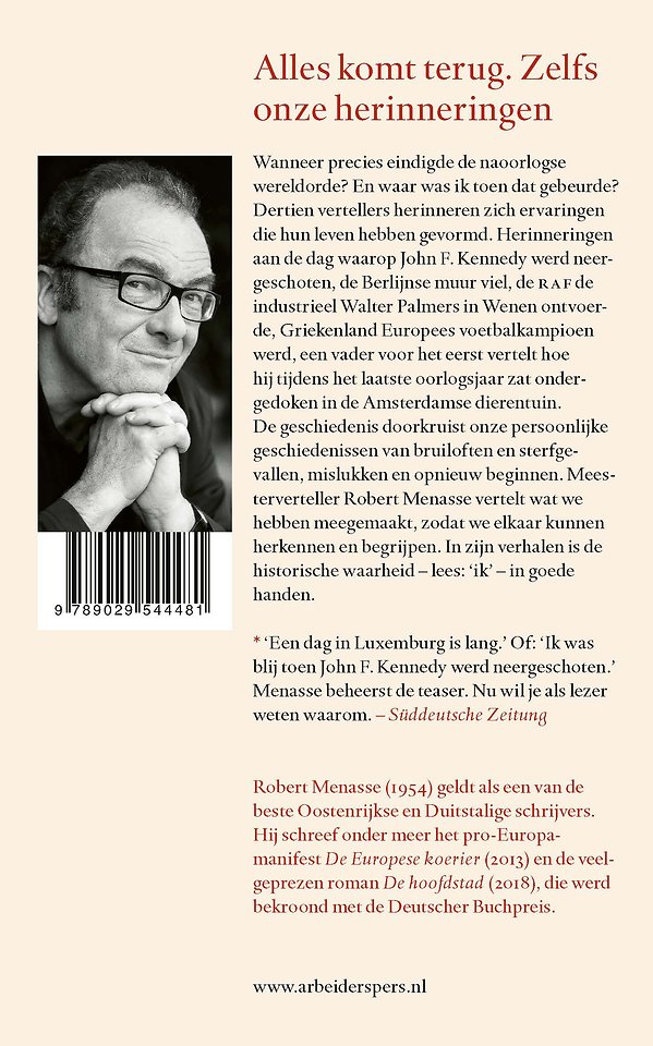 De geschiedenis doorkruist onze persoonlijke geschiedenissen van bruiloften en sterfgevallen, mislukken en opnieuw beginnen. Meesterverteller Robert Menasse vertelt wat we hebben meegemaakt, zodat we elkaar kunnen herkennen en begrijpen. In zijn verhalen is de historische waarheid – lees: ‘ik’ – in goede handen.