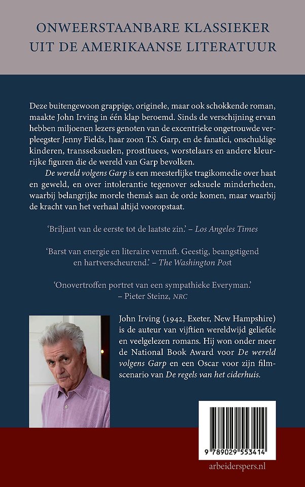 Deze buitengewoon grappige, originele, maar ook schokkende roman, maakte John Irving in één klap beroemd. Sinds de verschijning ervan, in 1978, hebben miljoenen lezers genoten van de excentrieke ongetrouwde verpleegster Jenny Fields, haar zoon T.S. Garp, en de fanatici, onschuldige kinderen, transseksuelen, hoeren, worstelaars en andere kleurrijke figuren die de wereld van Garp bevolken.