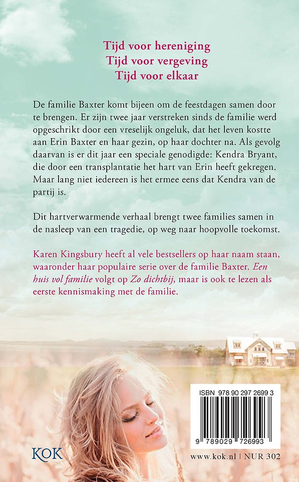 Karen Kingsbury schreef al vele romans en spin-offs over de familie Baxter, die de harten van vele lezers gestolen heeft. 'Een huis vol familie' volgt op 'Zo dichtbij', maar is ook goed op zichzelf te lezen.