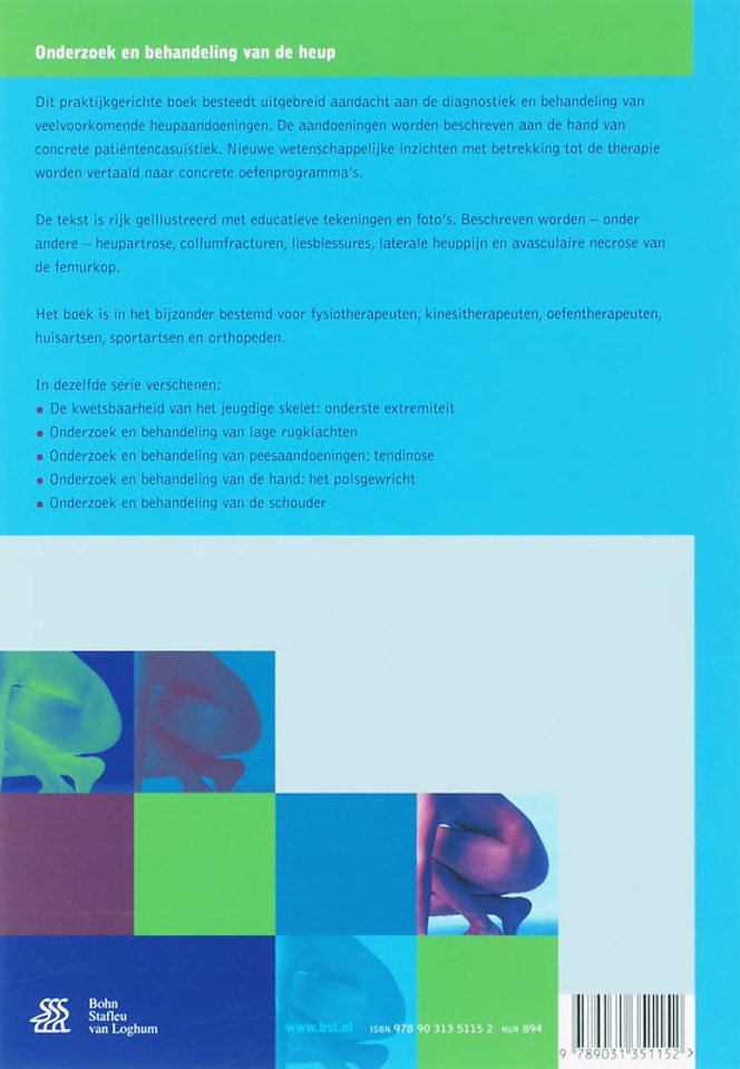 Dit praktijkgerichte boek besteedt uitgebereid aandacht aan de diagnostiek en behandeling van veelvoorkomende heupaandoeningen. De aandoeningen worden beschreven aan de hand van concrete patiëntencasuïstiek. Nieuwe wetenschappelijke inzichten over de therapie worden vertaald naar concrete oefenprogramma's.