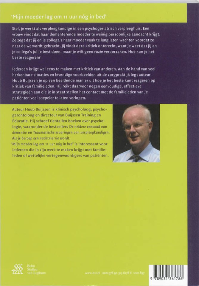 Iedereen krijgt wel eens te maken met kritiek van anderen. Aan de hand van veel herkenbare situaties en levendige voorbeelden uit de zorgpraktijk legt auteur Huub Buijssen je op een beeldende manier uit hoe je het beste kunt reageren op kritiek van familieleden. Hij reikt daarvoor negen eenvoudige, effectieve strategieën aan die je in staat stellen het contact met de familieleden van je patiënten veel soepeler te laten verlopen.