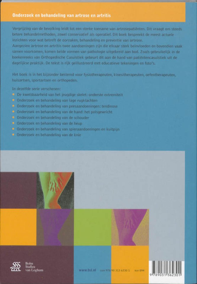 Vergrijzing van de bevolking leidt tot een sterke toename van artrosepatiënten. Dit vraagt om steeds betere behandelmethoden, zowel conservatief als operatief. Dit boek bespreekt de meest actuele inzichten voor wat betreft de oorzaken, behandeling en preventie van artrose.