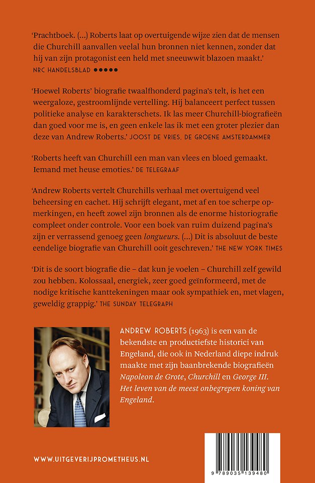 ‘Andrew Roberts vertelt Churchills verhaal met overtuigend veel beheersing en cachet. Hij schrijft elegant, met af en toe scherpe opmerkingen, en heeft zowel zijn bronnen als de enorme historiografie compleet onder controle. Voor een boek van ruim duizend pagina’s zijn er verrassend genoeg geen longueurs. (…) Dit is absoluut de beste eendelige biografie van Churchill ooit geschreven.’ - The New York Times