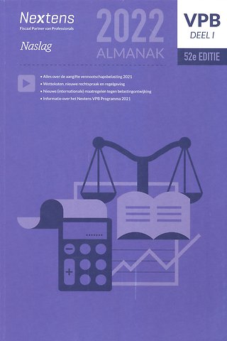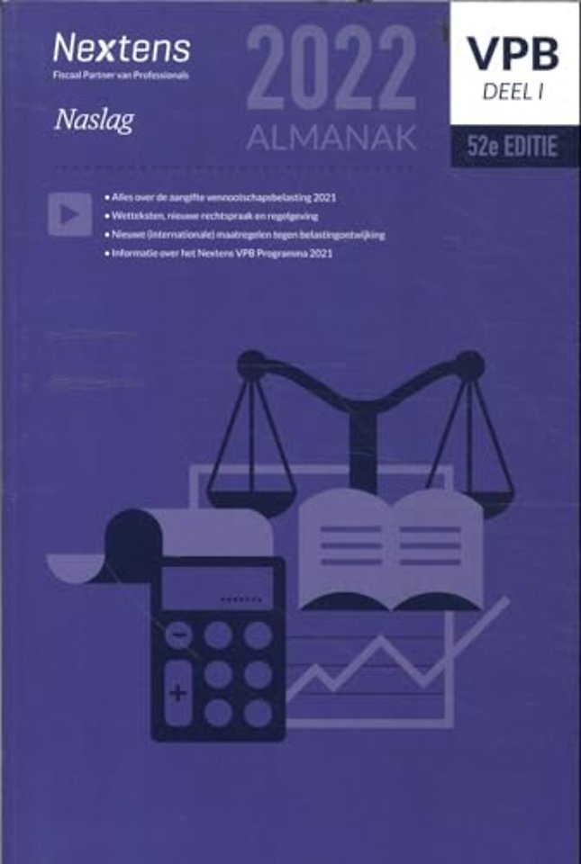 Nextens VPB Almanak is de ideale handleiding bij de aangifte vennootschapsbelasting. Voor vennootschapsdirecteuren, belastingadviseurs, advocaten, aandeelhouders en notarissen is hij een perfecte vraagbaak. U leest ook over het gebruik van het Nextens VPB Programma 2021.