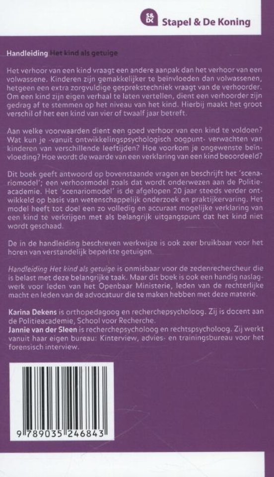 'Handleiding het kind als getuige' is onmisbaar voor de zedenrechercheur die is belast met deze belangrijke taak. Maar dit boek is ook een handig naslagwerk voor ieder van het Openbaar Ministerie, leden van de rechterlijke macht en leden van de advocatuur die te maken hebben met deze materie.
