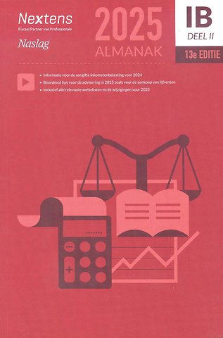 De IB Almanak is al jaren een vertrouwde uitgave voor de (belasting)adviseur, ondernemer en andere (professionele) gebruikers. De almanak geeft houvast aan deze gebruikers. Dat geldt als zij op voordelige en verantwoorde wijze zelf aangifte inkomstenbelasting 2024 willen doen of als zij voor anderen deze aangifte willen verzorgen.