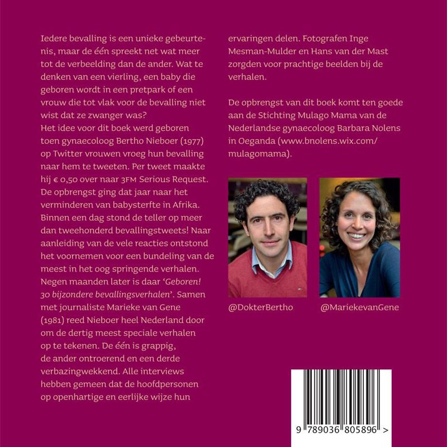 Naar aanleiding van de vele reacties ontstond het voornemen voor een bundeling van de meest in het oog springende verhalen. Negen maanden later is daar 'Geboren! 30 bijzondere bevallingsverhalen'. Samen met journaliste Marieke van Gene (1981) reed Nieboer heel Nederland door om de dertig meest speciale verhalen op te tekenen. De één is grappig, de ander ontroerend en een derde verbazingwekkend. Alle interviews hebben gemeen dat de hoofdpersonen op openhartige en eerlijke wijze hun ervaringen delen. Fotografen Inge Mesman-Mulder en Hans van der Mast zorgden voor prachtige beelden bij de verhalen.