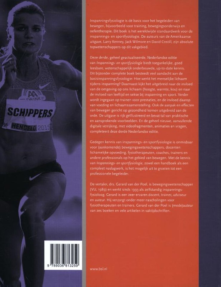 Deze derde, geheel geactualiseerde, Nederlandse editie van Inspannings- en sportfysiologie biedt toegankelijke, goed leesbare, wetenschappelijk onderbouwde, up-to-date kennis. Dit bijzonder complete boek besteedt veel aandacht aan de basisinspanningsfysiologie: Hoe werkt het menselijke lichaam tijdens inspanning? Daarnaast kijkt het uitgebreid naar de invloed van de omgeving op ons lichaam (hoogte, warmte, kou) en naar de invloed van leeftijd en sekse bij inspanning en sport. Verder wordt ingegaan op trainen voor prestaties, en de invloed daarop van voeding en lichaamssamenstelling. Ook de aanpak en effecten van bewegen gericht op gezondheid komen uitgebreid aan de orde. De uitgave is rijk geïllustreerd en bevat tal van praktische en aansprekende voorbeelden. En de geheel nieuwe, aanvullende digitale verrijking, met videofragmenten, animaties en vragen, completeert deze derde Nederlandse editie.
