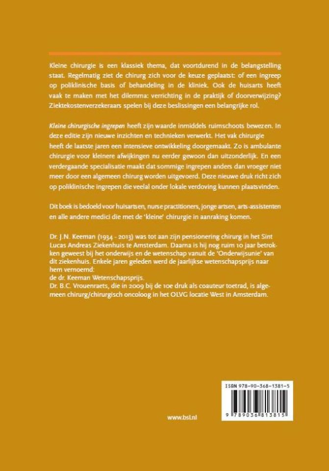 Dit boek is bedoeldvoor huisartsen, nurse practitioners, jonge artsen, arts-assistenten en alle andere medici die met de 'kleine' chirurgie in aanraking komen.