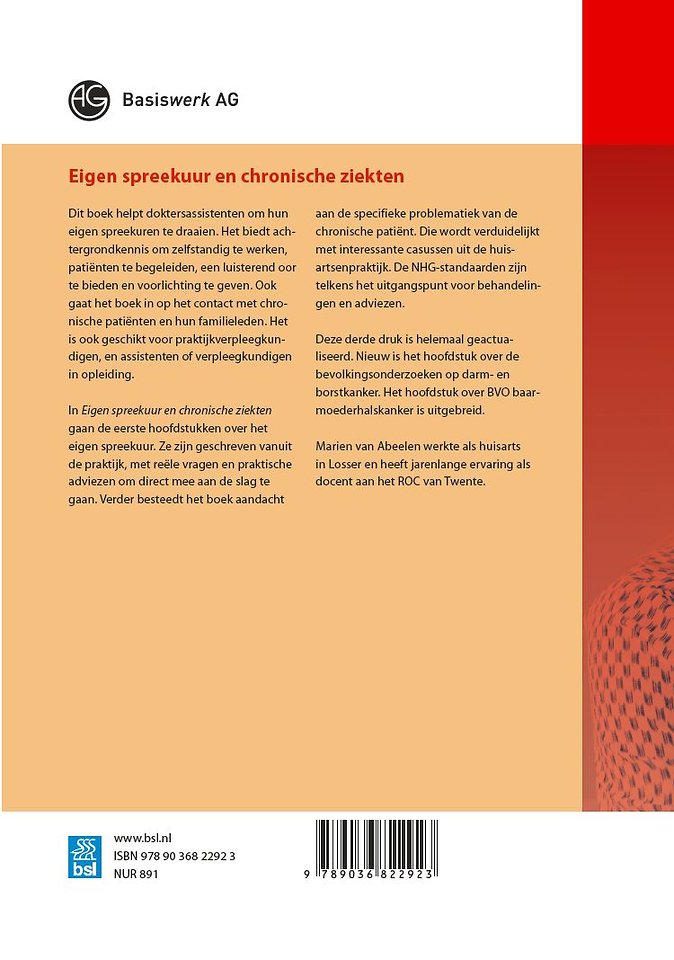Dit boek helpt doktersassistenten om hun eigen spreekuren te draaien. Het biedt achtergrondkennis om zelfstandig te werken, patiënten te begeleiden, een luisterend oor te bieden en voorlichting te geven. Ook gaat het boek in op het contact met chronische patiënten en hun familieleden. Het is ook geschikt voor praktijkverpleegkundigen, en assistenten of verpleegkundigen in opleiding.