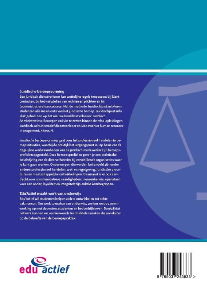 'Juridische Beroepsvorming' gaat over het professioneel handelen in beroepssituaties van de Juridisch medewerker. Welke kennis en vaardigheden zijn nodig? Welke beroepshouding wordt gevraagd?