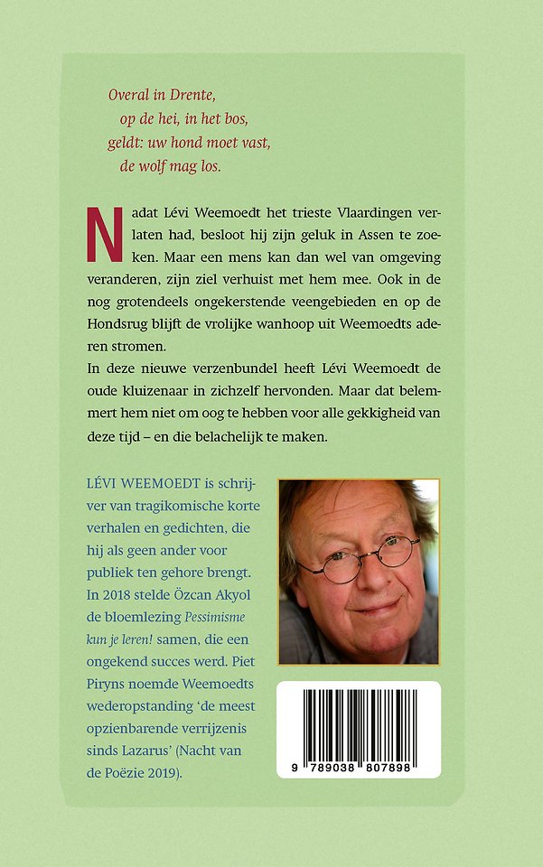 In deze nieuwe verzenbundel heeft Lévi Weemoedt de oude kluizenaar in zichzelf hervonden. Maar dat belemmert hem niet om oog te hebben voor alle gekkigheid van deze tijd – en die belachelijk te maken.