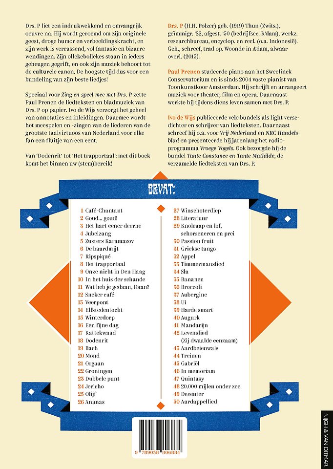 Drs. P liet een indrukwekkend en omvangrijk oeuvre na. Hij wordt geroemd om zijn originele geest, droge humor en verbeeldingskracht, en zijn werk is verrassend, vol fantasie en bizarre wendingen. Zijn ollekebollekes staan in ieders geheugen gegrift, en ook zijn liedteksten behoren tot de culturele canon. In 2019 zou de Drs. honderd zijn geworden. De hoogste tijd dus voor een bundeling van zijn beste liedjes! Speciaal voor deze unieke jubileumeditie zette Paul Prenen de liedteksten en bladmuziek van Drs P. op papier. Ivo de Wijs verzorgde het geheel van annotaties en inleidingen. Daarmee wordt het meespelen en -zingen van de liederen van de grootste taalvirtuoos van Nederland voor elke fan een fluitje van een cent. Van Dodenrit tot Trapportaal: dankzij Zing en speel mee met Drs. P komt het binnen uw (stem)bereik!
