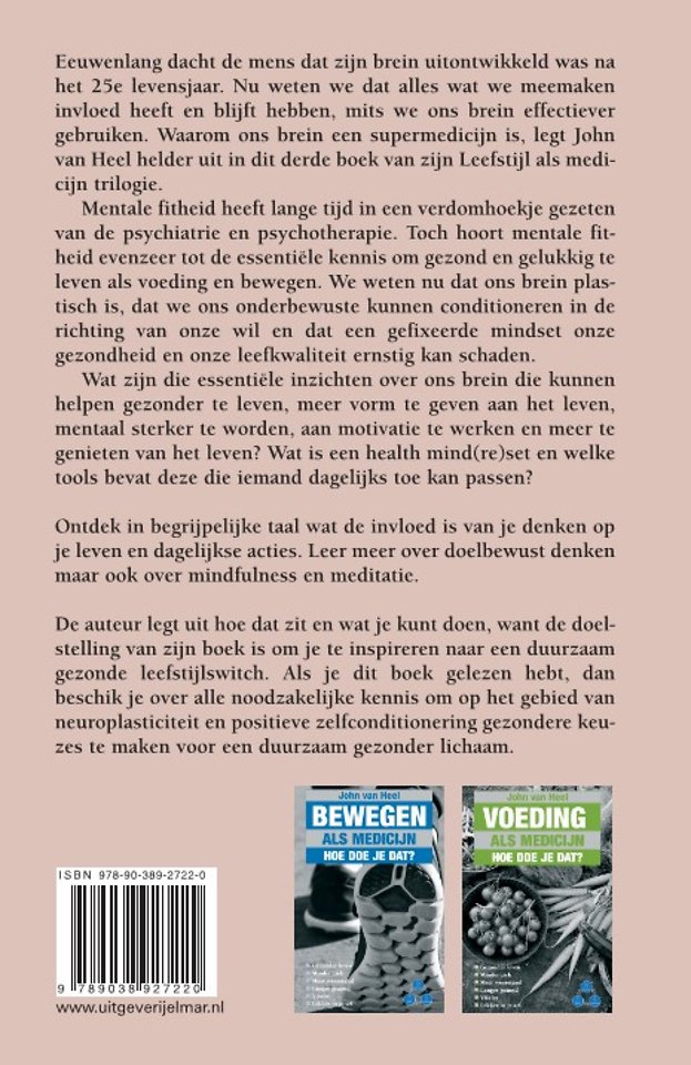 Mentale fitheid heeft lange tijd in een verdomhoekje gezeten van de psychiatrie en psychotherapie. Toch hoort mentale fitheid evenzeer tot de essentiële kennis om gezond en gelukkig te leven als voeding en bewegen. We weten nu dat ons brein plastisch is, dat we ons onderbewuste kunnen conditioneren in de richting van onze wil en dat een gefixeerde mindset onze gezondheid en onze leefkwaliteit ernstig kan schaden.