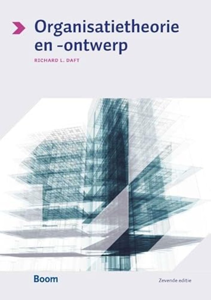 Dit is het internationale standaardwerk over organisatietheorie en wereldwijd het meest gebruikte leerboek. Deze Nederlandse vertaling is gebaseerd op de oorspronkelijke 7e editie. Net als vorige edities kenmerkt deze nieuwste uitgave zich door een veelheid aan casestudies, illustraties, voorbeelden en tips om cases te analyseren en organisaties te leiden. Richard Daft biedt een plezierig leesbaar overzicht van de meest recente manieren van denken over en kijken naar organisaties.
