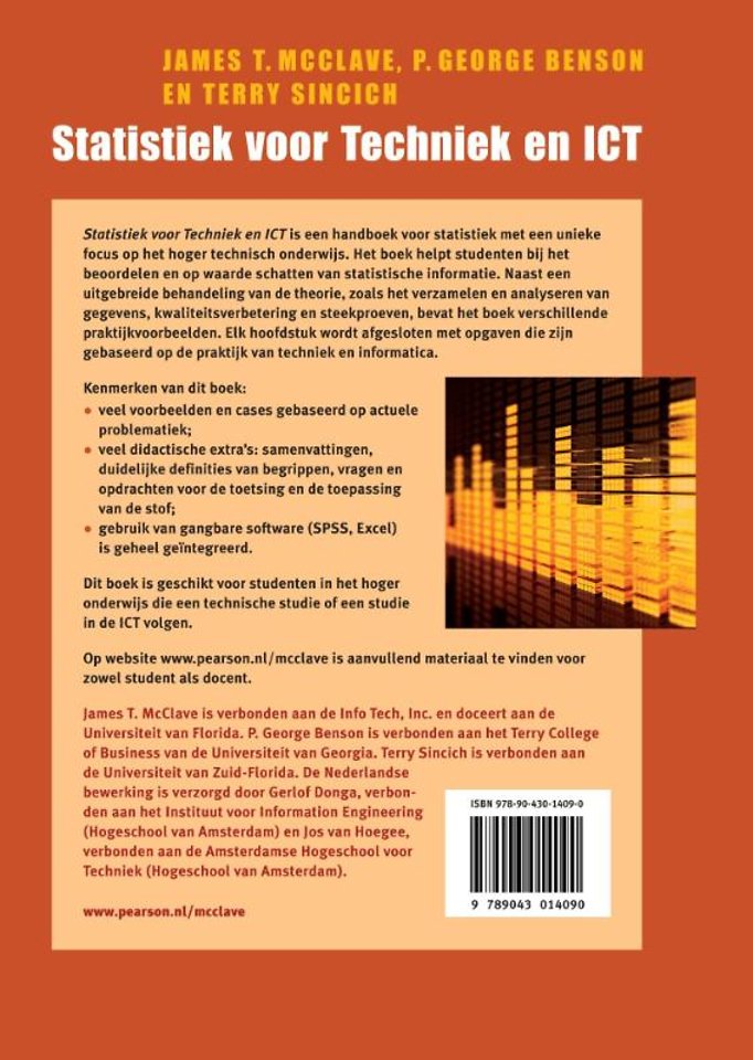 'Statistiek voor Techniek en ICT' is een handboek voor statistiek met een unieke focus op het hoger technisch onderwijs. Het boek helpt studenten bij het beoordelen en op waarde schatten van statistische informatie. Naast een uitgebreide behandeling van de theorie, zoals het verzamelen en analyseren van gegevens, kwaliteitsverbetering en steekproeven, bevat het boek verschillende praktijkvoorbeelden. Elk hoofdstuk wordt afgesloten met opgaven die zijn gebaseerd op de praktijk van technieken informatica.