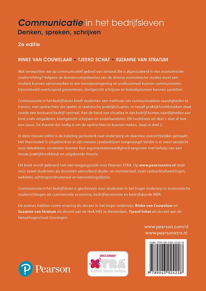 Meer over de auteursWat verwachten we op communicatief gebied van iemand die afgestudeerd is in een economische studierichting? Volgens de domeincompetenties van de diverse economische studies moet een student goed kunnen samenwerken, overtuigend kunnen presenteren, doelgericht kunnen schrijven en goed kunnen adviseren en beleidsplannen opstellen. Communicatie in het bedrijfsleven koppelt deze domeincompetenties van commerciële economie, bedrijfseconomie en bedrijfskunde/MER aan de beroepspraktijk.