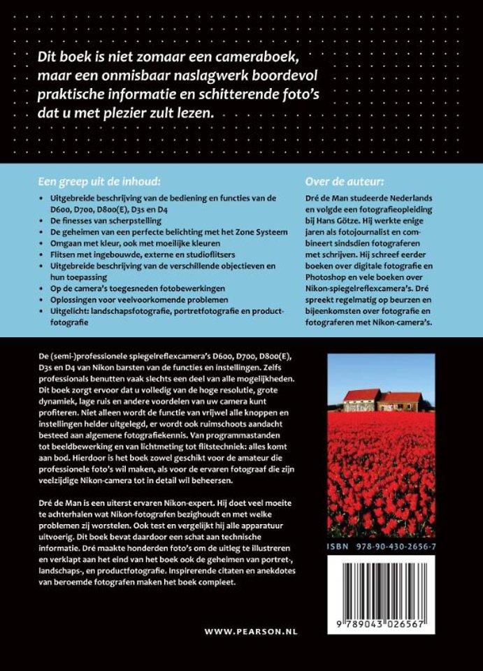 Dré de Man is een uiterst ervaren Nikon-expert. Hij doet veel moeite te achterhalen wat Nikon-fotografen bezighoudt en met welke problemen zij worstelen. Ook test en vergelijkt hij alle apparatuur uitvoerig. Dit boek bevat daardoor een schat aan technische informatie. Dré maakte honderden foto's om de uitleg te illustreren en verklapt aan het eind van het boek ook de geheimen van portret-, landschaps-, en productfotografie. Inspirerende citaten en anekdotes van beroemde fotografen maken het boek compleet.