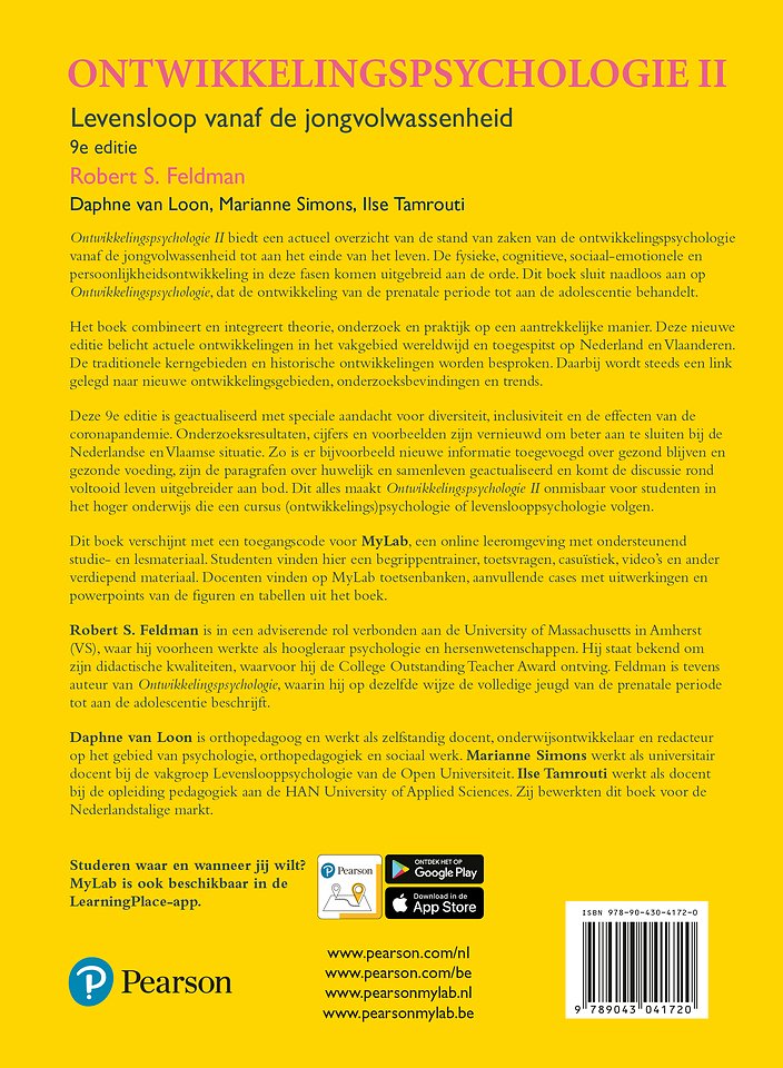 Deze 9e editie is geactualiseerd met speciale aandacht voor diversiteit, inclusiviteit en de effecten van de coronapandemie. Onderzoeksresultaten, cijfers en voorbeelden zijn vernieuwd om beter aan te sluiten bij de Nederlandse en Vlaamse situatie. Zo is er bijvoorbeeld nieuwe informatie toegevoegd over gezond blijven en gezonde voeding, zijn de paragrafen over huwelijk en samenleven geactualiseerd en komt de discussie rond voltooid leven uitgebreider aan bod. Dit alles maakt Ontwikkelingspsychologie II onmisbaar voor studenten in het hoger onderwijs die een cursus (ontwikkelings)psychologie of levenslooppsychologie volgen.