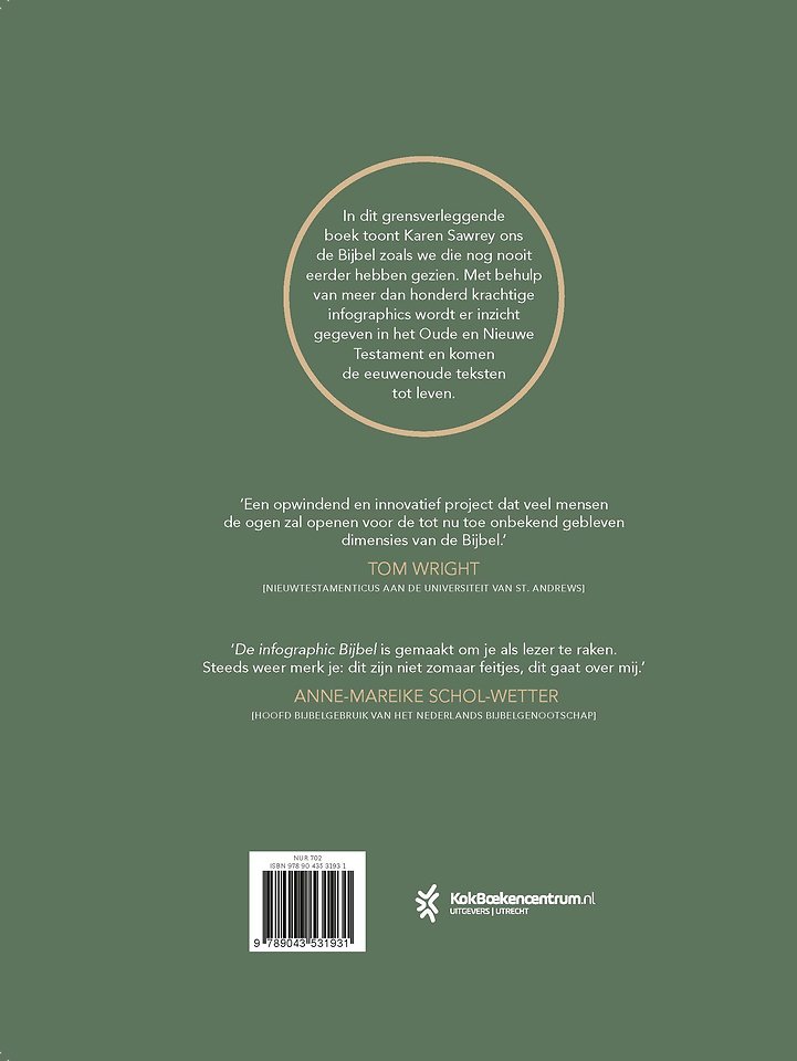 In 'De infographic Bijbel' van Karen Sawrey wordt de Bijbel getoond zoals je die nog nooit eerder hebt gezien: in infographics. In meer dan honderd illustraties wordt er inzicht gegeven in het Oude en Nieuwe Testament en komen eeuwenoude woorden tot leven. De schepping, de maten van de ark van Noach, de rijkdom van koning Salomo, de parabels van Jezus, de reizen van Paulus: alle bekende personen en verhalen komen aan bod. Dit is de Bijbel voor een nieuwe generatie.