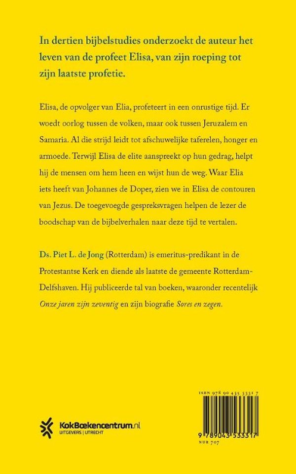 In tien bijbelstudies onderzoekt de auteur het leven van de profeet Elisa, van zijn roeping tot zijn laatste profetie. Elisa, de opvolger van Elia, profeteert in een onrustige tijd. Er woedt oorlog tussen de volken, maar ook tussen Jeruzalem en Samaria. Al die strijd leidt tot afschuwelijke taferelen, honger en armoede. Terwijl Elisa de elite aanspreekt op hun gedrag, helpt hij de mensen om hem heen en wijst hun de weg. Waar Elia iets heeft van Johannes de Doper, zien we in Elisa de contouren van Jezus.