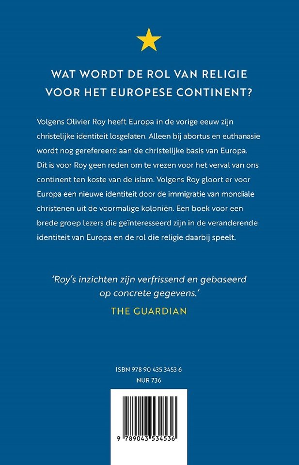 De Franse politieke wetenschapper en Islamkenner Olivier Roy onderzoekt een boeiende vraag: Is Europa nog christelijk? Volgens hem heeft Europa in de vorige eeuw zijn christelijke identiteit losgelaten. Alleen bij abortus en euthanasie wordt nog gerefereerd aan de christelijke basis van Europa. Dit is voor Roy geen reden om te vrezen voor het verval van ons continent ten koste van de islam. Volgens Roy gloort er voor Europa een nieuwe identiteit door de immigratie van mondiale christenen uit de voormalige koloniën. Een boek voor een brede groep lezers die geïnteresseerd zijn in de veranderende identiteit van Europa.