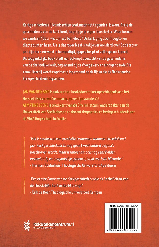Kerkgeschiedenis voor iedereen van Jan van de Kamp en Almatine Leene biedt een beknopt overzicht van de geschiedenis van de christelijke kerk, beginnend bij de Vroege kerk en eindigend in de 21e eeuw. Daarbij ligt de nadruk op de lijnen die de Nederlandse kerkgeschiedenis bepaalden.