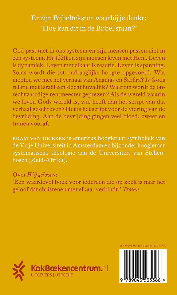 Theoloog Bram van de Beek belicht in ‘God lééft’ de allermoeilijkst te begrijpen teksten uit de Bijbel. De gedachte hierbij is dat God niet past in ons systeem en zijn mensen evenmin. Hij lééft en zijn mensen leven met Hem. Leven is dynamiek. Leven met elkaar is reactie. Leven is spanning. Soms wordt die tot ondraaglijke hoogte opgevoerd. Wat moeten we met het verhaal van Ananias en Saffira? Is Gods relatie met Israël een slecht huwelijk? Waarom wordt de onrechtvaardige rentmeester geprezen? Als de wereld waarin we leven Gods wereld is, wie heeft dan het script van dat verhaal geschreven? Het is het script voor de viering van de bevrijding. Aan de bevrijding gingen veel bloed, zweet en tranen vooraf.