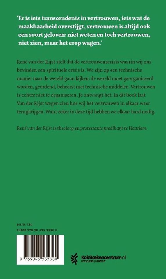 René van de Rijst stelt in ‘Het geschenk van vertrouwen’ dat de vertrouwenscrisis waarin wij ons bevinden een spirituele crisis is. We zijn op een vrij technische manier naar de wereld gaan kijken: de wereld moet georganiseerd worden, geordend, beheerst met technische middelen. Vertrouwen is echter niet te organiseren. Je ontvangt het. In dit boek laat Van der Rijst wegen zien hoe wij het vertrouwen in elkaar weer terugkrijgen. Want zeker in deze tijd hebben we elkaar hard nodig.