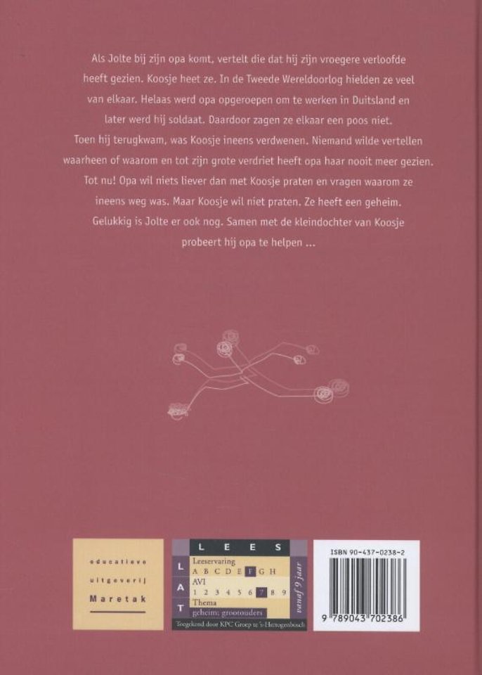 Als Jolte bij zijn opa komt, vertelt die dat hij zijn vroegere verloofde heeft gezien. Koosje heet ze. In de Tweede Wereldoorlog hielden ze veel van elkaar. Helaas werd opa opgeroepen om te werken in Duitsland en later werd hij soldaat. Daardoor zagen ze elkaar een poos niet. Toen hij terugkwam, was Koosje ineens verdwenen. Niemand wilde vertellen waarheen of waarom en tot zijn grote verdriet heeft opa haar nooit meer gezien. Tot nu! Opa wil niets liever dan met Koosje praten en vragen waarom ze ineens weg was.