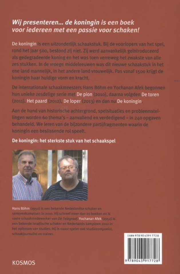 Wij presenteren de koningin behandelt het krachtigste stuk van het schaakspel. De internationale schaakmeesters Hans Böhm en Yochanan Afek bespreken zestig thema's - aanvallend en verdedigend - aan de hand van historische achtergronden, spelsituaties en probleemstellingen. Ook bijzondere partijen waarin de koningin een beslissende rol speelde, komen aan bod. Wij presenteren de koningin is het vijfde deel in de serie Wij presenteren. Eerder verschenen delen over de pion, de toren, het paard en de loper. Uiteindelijk zullen alle schaakstukken in deze unieke serie een keer centraal staan. Onmisbaar voor iedereen met een passie voor schaken.
