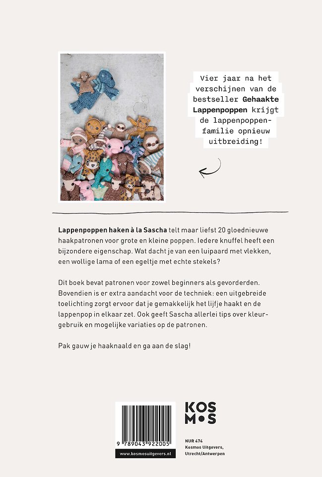 Vier jaar na het verschijnen van het eerste deel van de bestseller Gehaakte lappenpoppen krijgt de lappenpoppenfamilie van Sascha Blase-Van Wagtendonk uitbreiding. In Lappenpoppen haken à la Sascha staan maar liefst 20 gloednieuwe haakpatronen voor grote en kleine poppen.