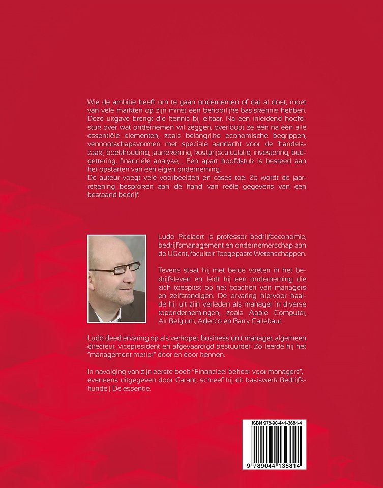 Wie de ambitie heeft om te gaan ondernemen of dat al doet, moet van vele markten op zijn minst een behoorlijke basiskennis hebben. Deze uitgave brengt die kennis bij elkaar. Na een inleidend hoofdstuk over wat ondernemen wil zeggen, overloopt ze één na één alle essentiële elementen, zoals belangrijke economische begrippen, vennootschapsvormen met speciale aandacht voor de 'handelszaak', boekhouding, jaarrekening, kostprijscalculatie, investering, budgettering, financiële analyse,... Een apart hoofdstuk is besteed aan het opstarten van een eigen onderneming. De auteur voegt vele voorbeelden en cases toe. Zo wordt de jaarrekening besproken aan de hand van reële gegevens van een bestaand bedrijf.