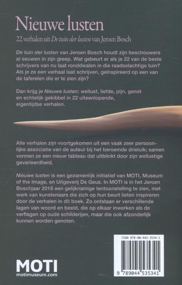 ‘Tot mijn verrassing, mijn aangename verrassing, zeiden alle benaderde auteurs meteen “ja” op het verzoek om een verhaal naar aanleiding van De Tuin der lusten te schrijven. Hoe dat komt? Ik denk dat het met de dubbelzinnigheid van het schilderij te maken heeft. De afbeeldingen zijn heel concreet en raadselachtig tegelijk. Ze bieden zowel een aanknopingspunt als ruimte voor het eigen verhaal van iedere schrijver. Het is fascinerend om te lezen hoe verschillend, hoe persoonlijk en hoe eigentijds de beelden van Jeroen Bosch kunnen worden vertaald. De tweeëntwintig stukken vormen samen een nieuw tableau dat uitblinkt door zijn wellustige gevarieerdheid.’ – hans maarten van den brink