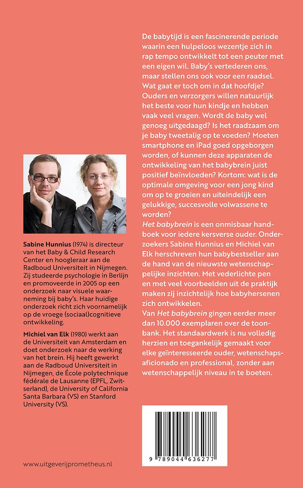 Het babybrein is een onmisbaar handboek voor iedere kersverse ouder. Onderzoekers Sabine Hunnius en Michiel van Elk herschreven hun babybestseller aan de hand van de nieuwste wetenschappelijke inzichten. Met vederlichte pen en met veel voorbeelden uit de praktijk maken zij inzichtelijk hoe babyhersenen zich ontwikkelen.