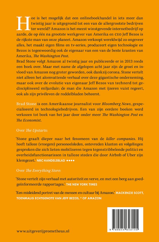 Brad Stone volgt Amazon al vanaf het allereerste begin en publiceerde er in 2013 al een boek over. Maar met name de afgelopen acht jaar zijn de groei en invloed van Amazon nog groter geworden, ook dankzij corona. Stone vertelt het alomvattende verhaal van deze gigantische onderneming, en durft daarbij de ultieme vraag te stellen: is Amazon goed voor ons?