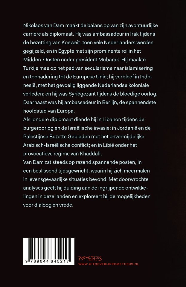 Nikolaos van Dam maakt de balans op van zijn avontuurlijke carrière als diplomaat. Hij was ambassadeur in Irak tijdens de bezetting van Koeweit, toen vele Nederlanders werden gegijzeld, en in Egypte met zijn prominente rol in het Midden-Oosten onder president Mubarak. Hij maakte Turkije mee op het pad van secularisme naar islamisering en toenadering tot de Europese Unie; hij verbleef in Indonesië, met het gevoelig liggende Nederlandse koloniale verleden; en hij was Syriëgezant tijdens de bloedige oorlog. Daarnaast was hij ambassadeur in Berlijn, de spannendste hoofdstad van Europa.