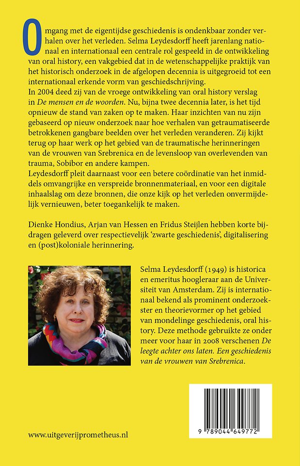 In 2004 deed zij van de vroege ontwikkeling van oral history verslag in De mensen en de woorden. Nu, bijna twee decennia later, is het tijd opnieuw de stand van zaken op te maken. Haar inzichten van nu zijn gebaseerd op nieuw onderzoek naar hoe verhalen van getraumatiseerde betrokkenen gangbare beelden over het verleden veranderen. Zij kijkt terug op haar werk op het gebied van de traumatische herinneringen van de vrouwen van Srebrenica en de levensloop van overlevenden van trauma, Sobibor en andere kampen.