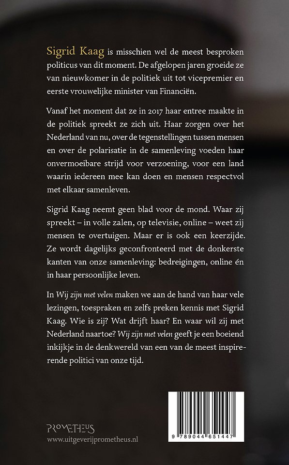 Waar zij spreekt – in volle zalen, op televisie, online – weet zij mensen te overtuigen. Maar er is ook een keerzijde. Ze wordt dagelijks geconfronteerd met de donkerste kanten van onze samenleving: bedreigingen, online én in haar persoonlijke leven. In Wij zijn met velen maken we aan de hand van haar vele lezingen, toespraken en zelfs preken kennis met Sigrid Kaag.