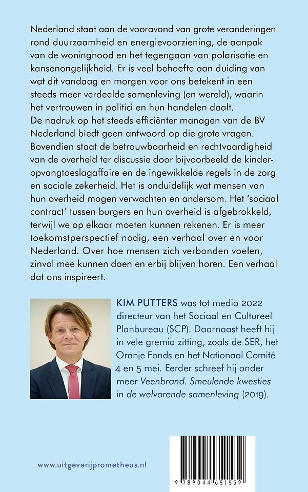 Meer over Kim PuttersNederland staat aan de vooravond van grote veranderingen rond duurzaamheid en energievoorziening, de aanpak van de woningnood en het tegengaan van polarisatie en kansenongelijkheid. Er is veel behoefte aan duiding van wat dit vandaag en morgen voor ons betekent in een steeds meer verdeelde samenleving (en wereld), waarin het vertrouwen in politici en hun handelen daalt.
