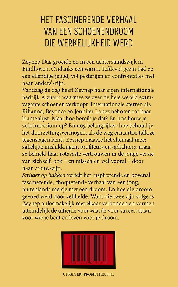 'Strijder op hakken' vertelt het inspirerende en bovenal fascinerende, choquerende verhaal van een jong, buitenlands meisje met een droom. En hoe die droom gevoed werd door zelfliefde. Want die twee zijn volgens Zeynep onlosmakelijk met elkaar verbonden en vormen uiteindelijk de ultieme voorwaarde voor succes: staan voor wie je bent en leven voor je droom.