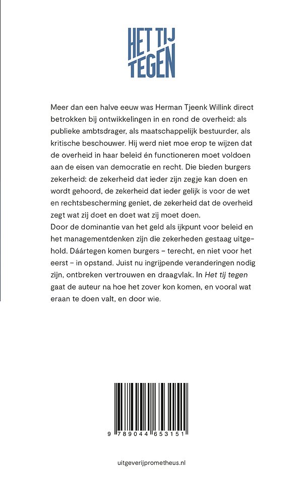 Met de concrete gevolgen daarvan worden we nu in volle omvang geconfronteerd. Een kleine selectie uit Tjeenk Willinks betogen van de afgelopen tien jaar zijn samengebracht in 'Het tij tegen', steeds met een terugblik op de context waarin ze werden uitgesproken of geschreven.