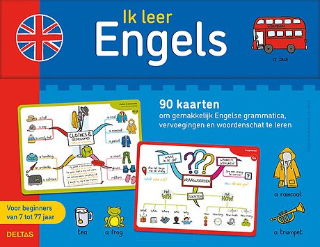 90 kaarten om gemakkelijk Engelse grammatica, vervoegingen en woordenschat te leren.