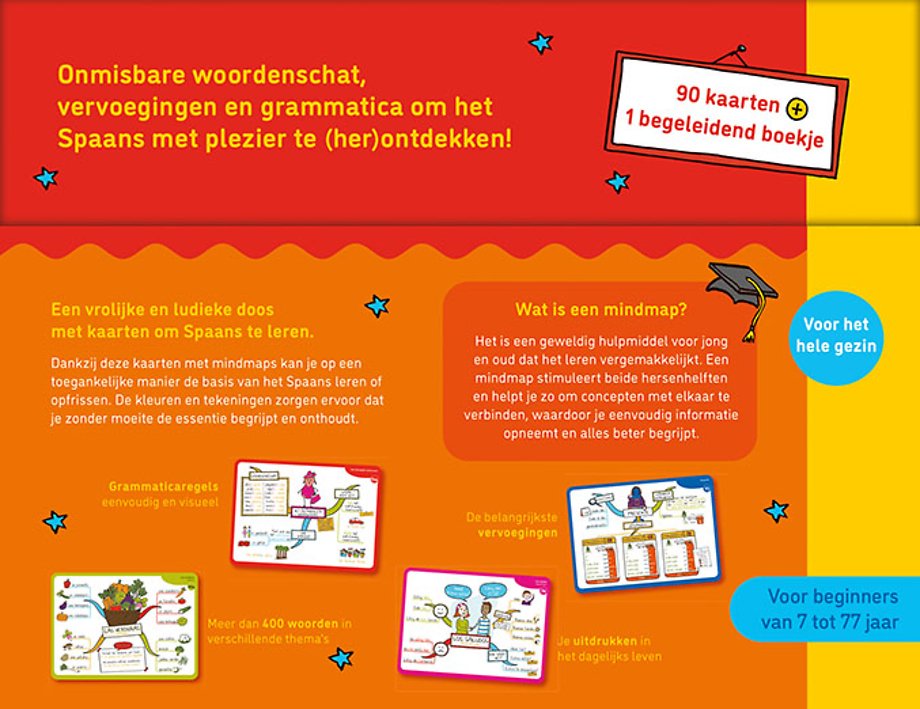 90 kaarten om gemakkelijk Spaanse grammatica, vervoegingen en woordenschat te leren.